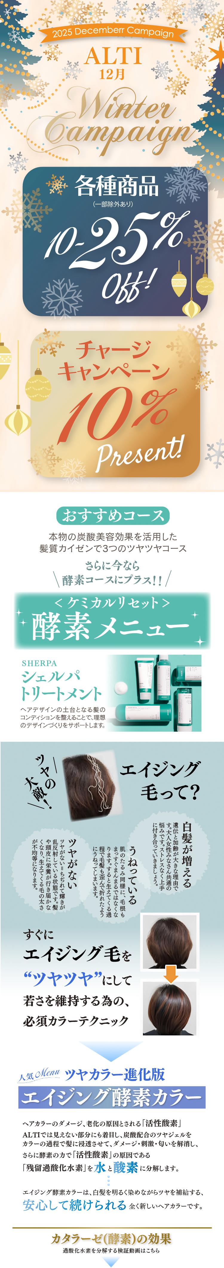 2025年11月27日 (オアシス店) 2025 ALTI DECEMBER キャンペーン HAIR 関連記事 (東京リュープリエ店) 2025 ALTI DECEMBER キャンペーン HAIR 2025年11月28日 (東京ブール店) 2025 ALTI DECEMBER キャンペーン HAIR 2025年11月28日 (インターナショナル店) 2025 ALTI DECEMBER キャンペーン HAIR 2025年11月27日 (東京ブール店) 2025 ALTI SEPTEMBER キャンペーン HAIR 2025年8月28日 このコラムをシェアする 関連タグ 旭川